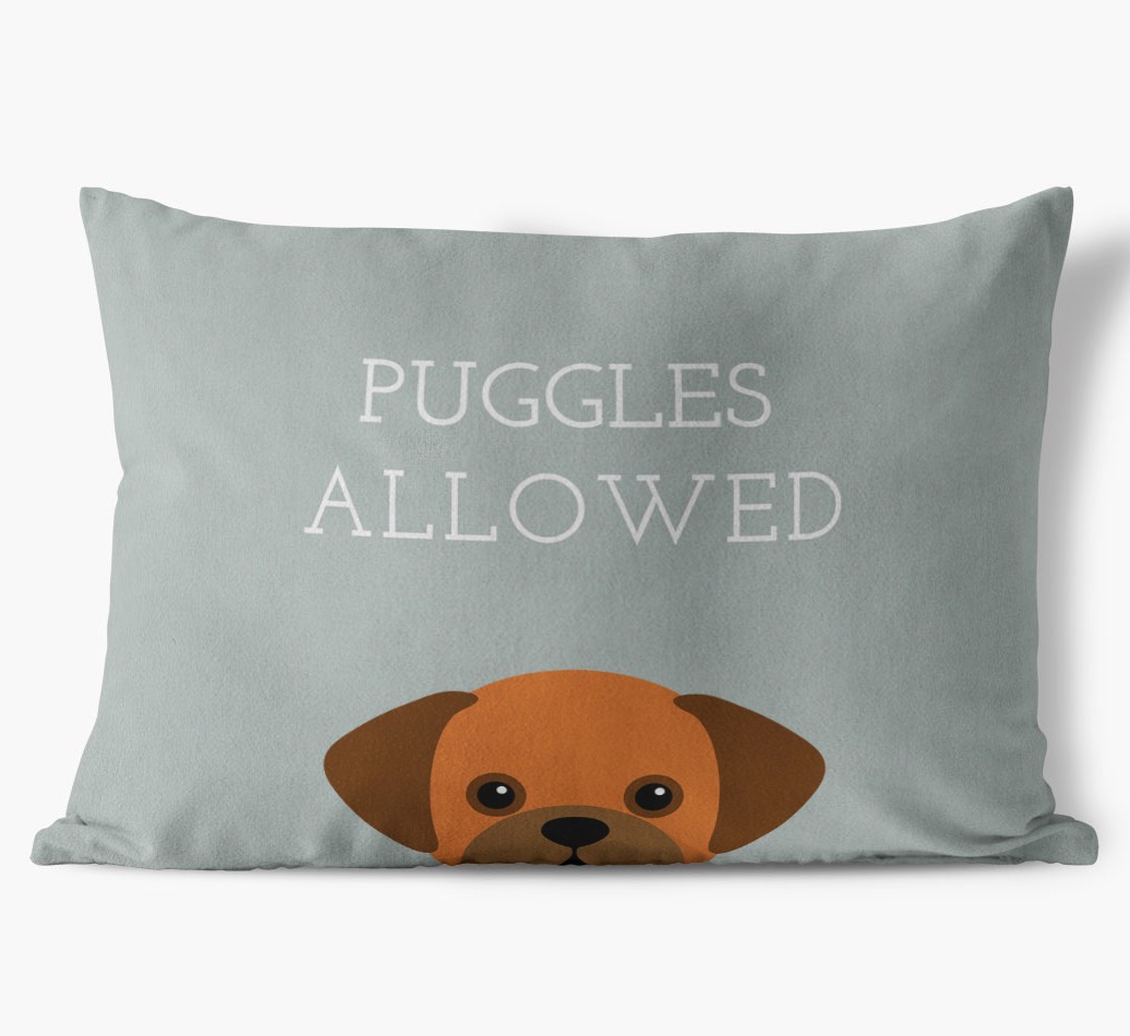 This exclusive, luxurious pillow is printed with the words ‘Puggles Allowed’, which I’m sure Your Puggle would definitely approve of.