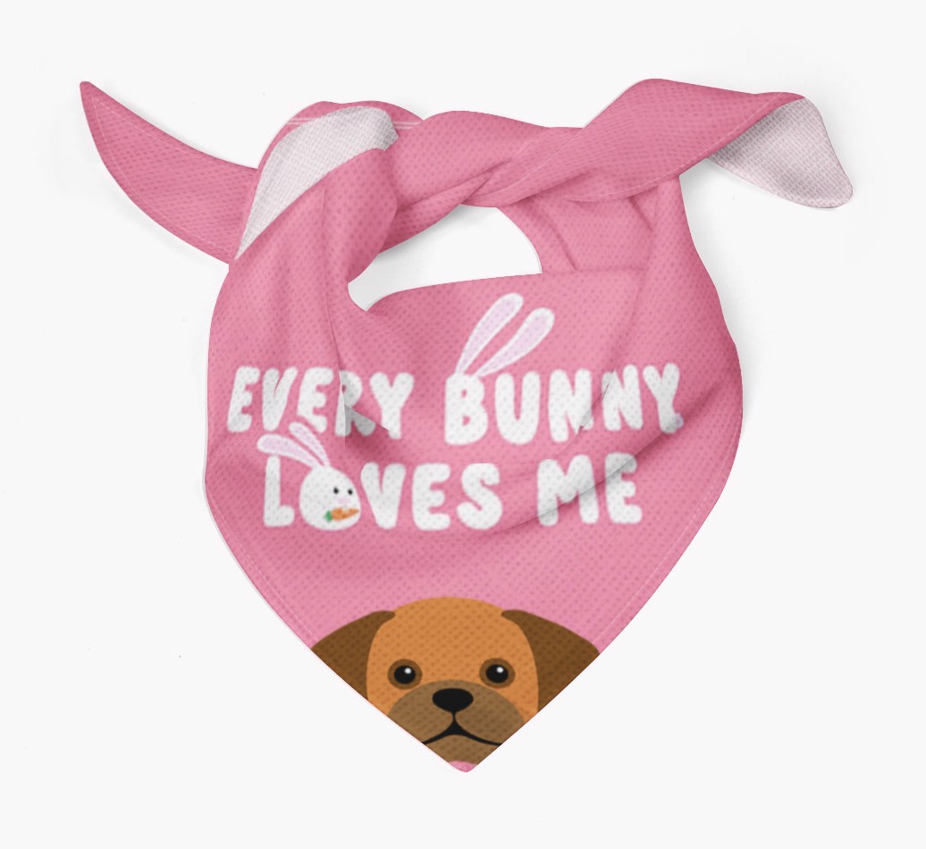 Tailored with the fabulous saying: 'Every Bunny Loves Me', this bandana is the perfect addition to your Puggle's wardrobe! Available in four egg-ceptional colors and personalized with your Puggle's icon, this is the perfect pawchase for Easter!