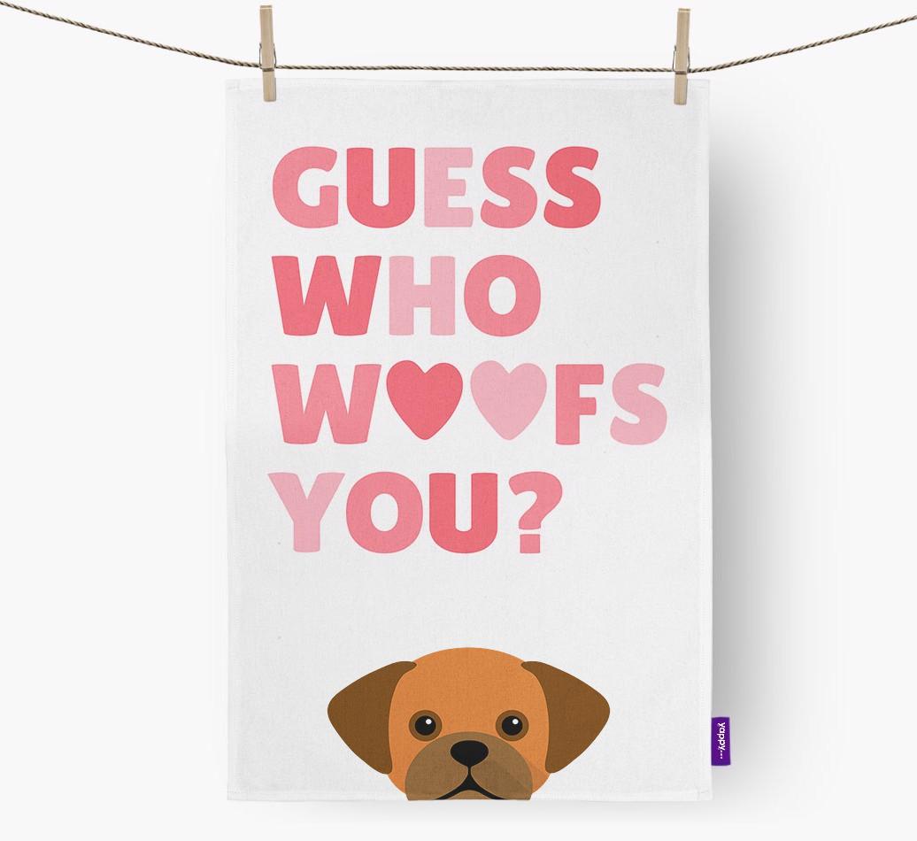 'Guess Who Woofs You?' - Personalized Puggle Dish Towel