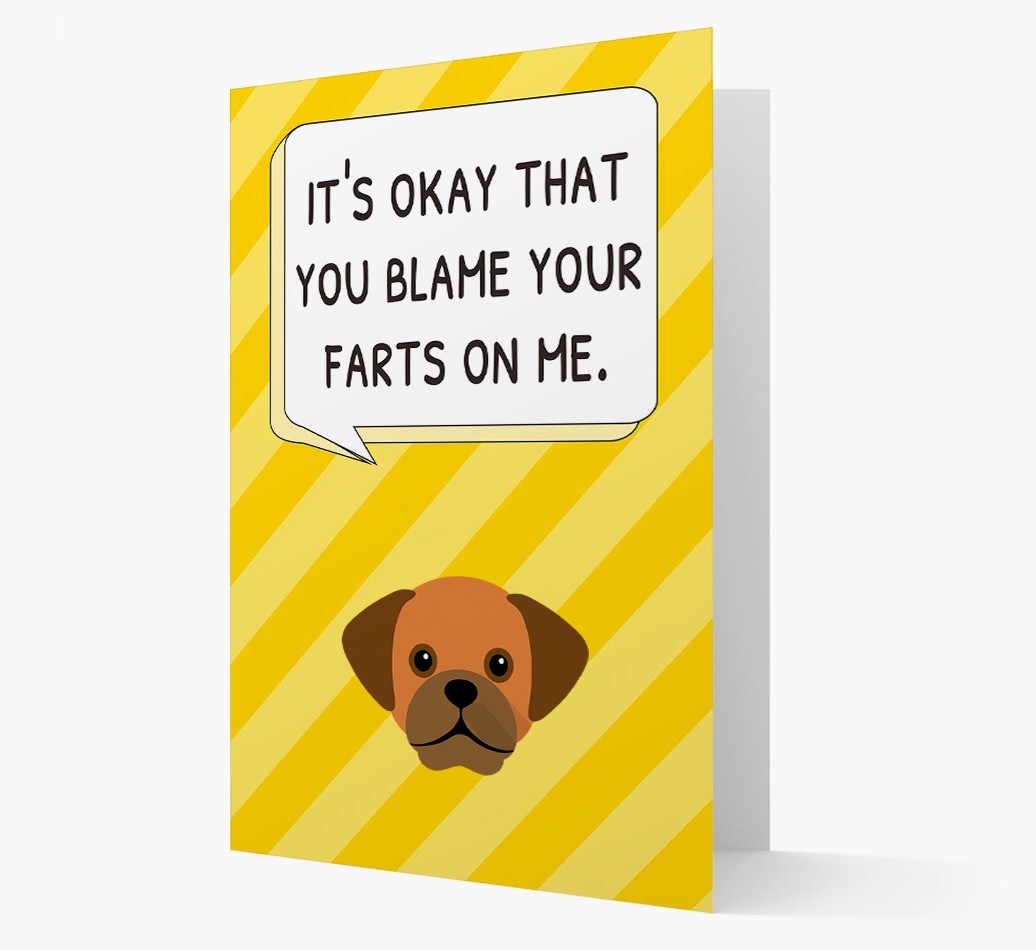 Does Your Puggle take the blame for their human's farts? Well, we think it's time your Puggle lets them know that the jig is up with this funny card!