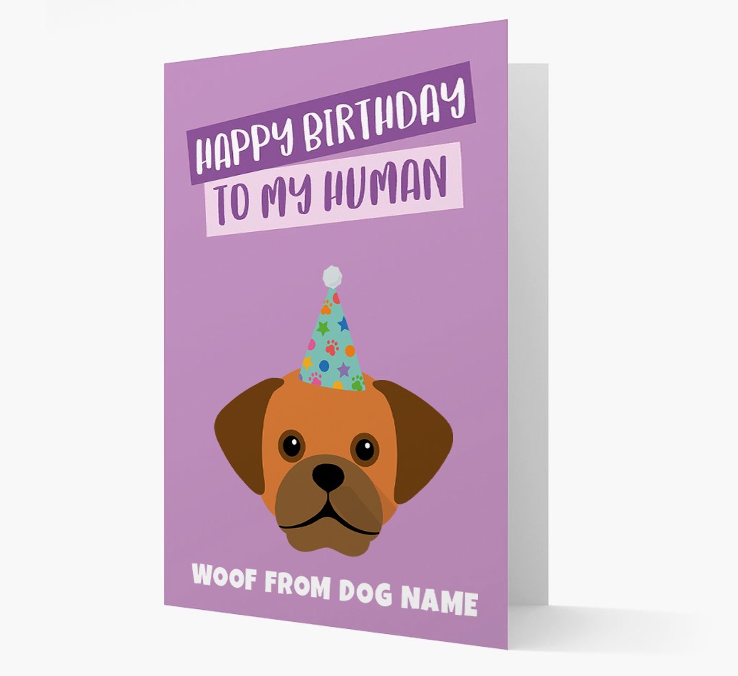 'Happy Birthday to My Human' - Personalized Puggle Card