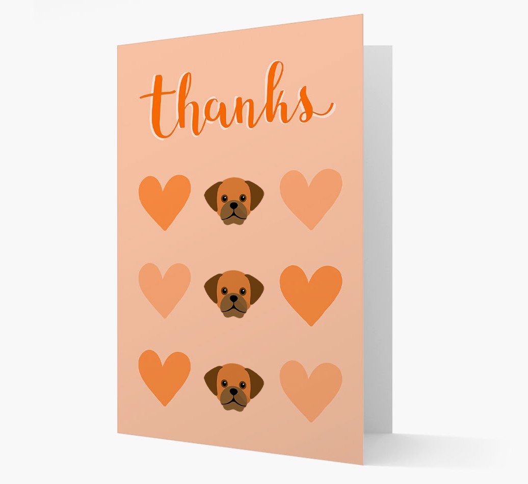 'Thanks' - Personalized Puggle Card with Heart Pattern