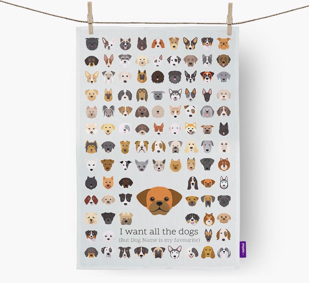'I Want All the Dogs' - Personalized Puggle Dish Towel