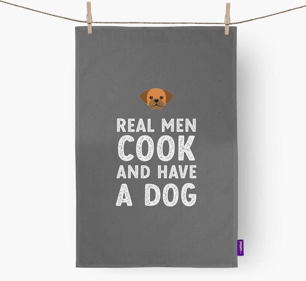 Real Men Cook And Have A Dog: Personalized Puggle Dish Towel