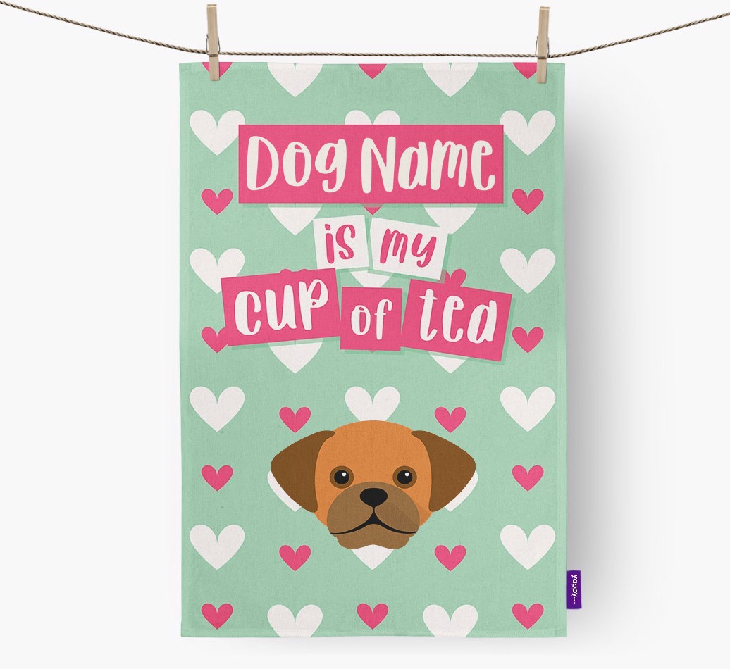 'Puggle Is My Cup of Tea' - Personalized Puggle Dish Towel