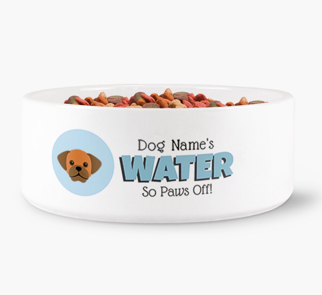 'Puggle's Water' - Personalized Water Bowl for your Puggle