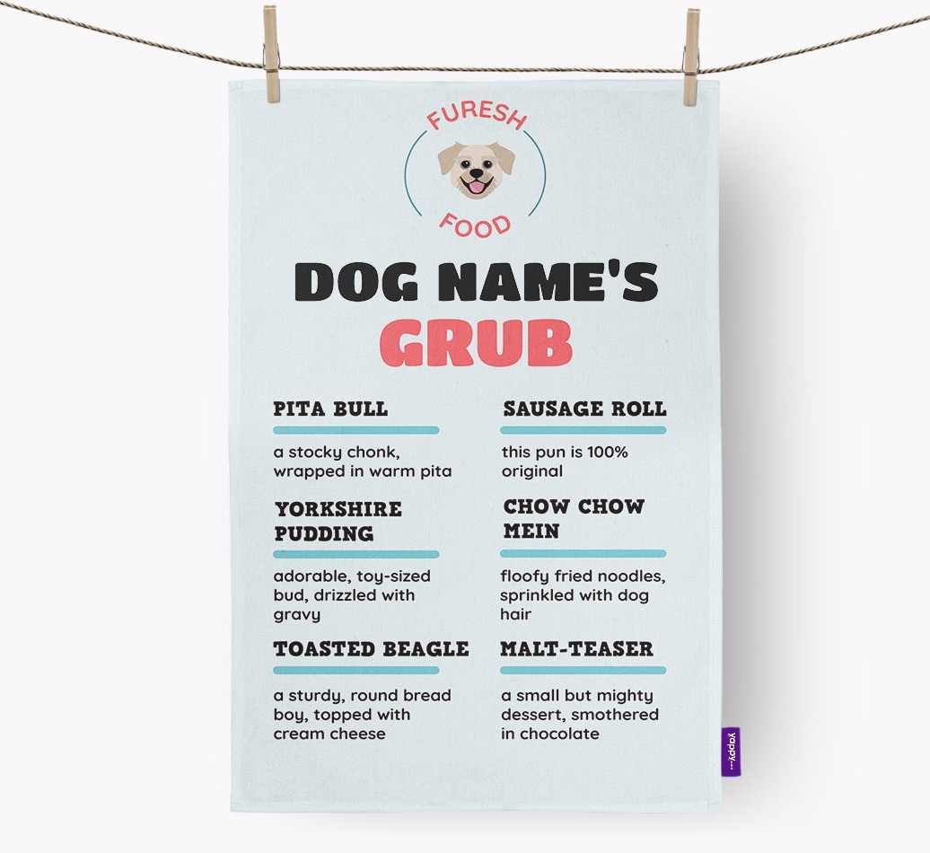 This dish towel design serves up plenty of doggy dishes that'll have you howling with laughter!