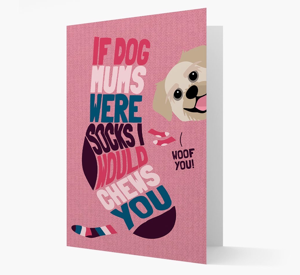 This comical card is pawfect for the Dog Mom who's pawrent to a sock-loving Pugzu.
