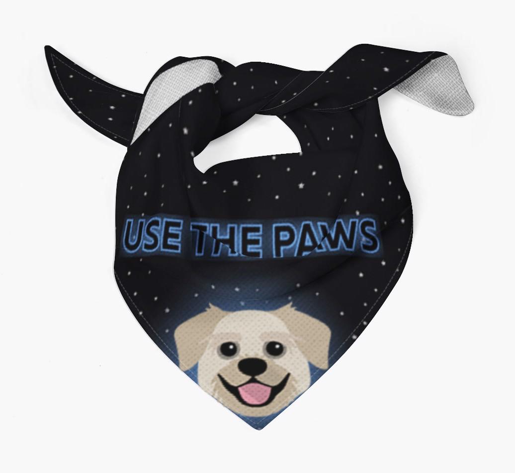 Featuring a starry night sky and glowing text, this bandana is made extra special with the addition of your Pugzu's cute icon.