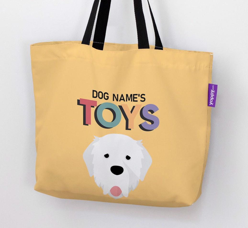 Don’t worry, we’ve got you covered with this pawsonalized canvas bag made for your Pyrenean Mastiff’s toy collection!