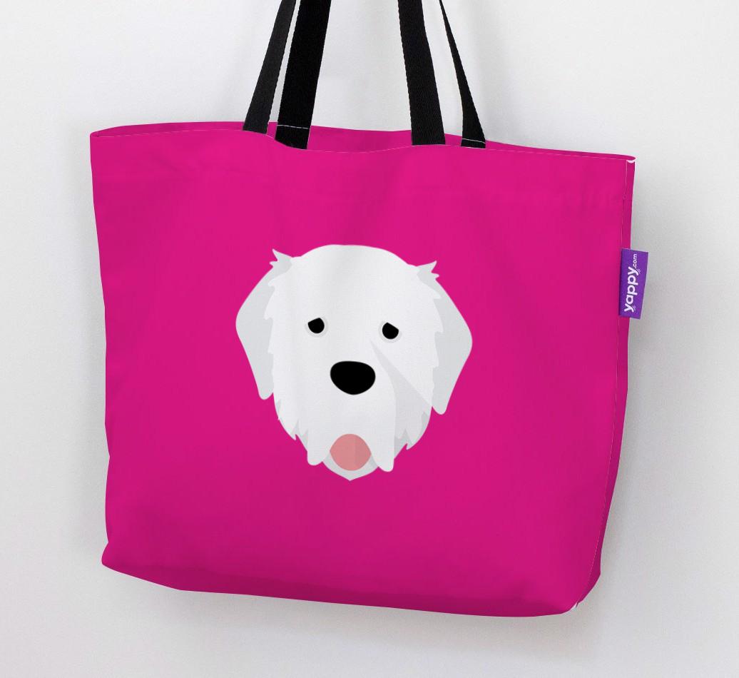 This Canvas Bag features an exclusive Pyrenean Mastiff icon printed on a bright, bold background.