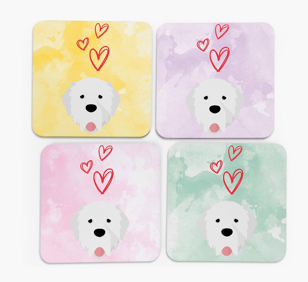 Each coaster comes in a pretty pastel color and features a pawgeous Pyrenean Mastiff icon, making them the pawfect homeware addition to any Pyrenean Mastiff lover's home.