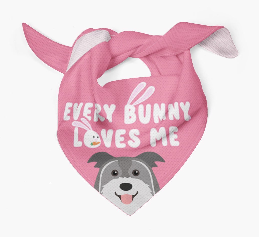 Tailored with the fabulous saying: 'Every Bunny Loves Me', this bandana is the perfect addition to your Pyrenean Shepherd's wardrobe! Available in four egg-ceptional colors and personalized with your Pyrenean Shepherd's icon, this is the perfect pawchase for Easter!