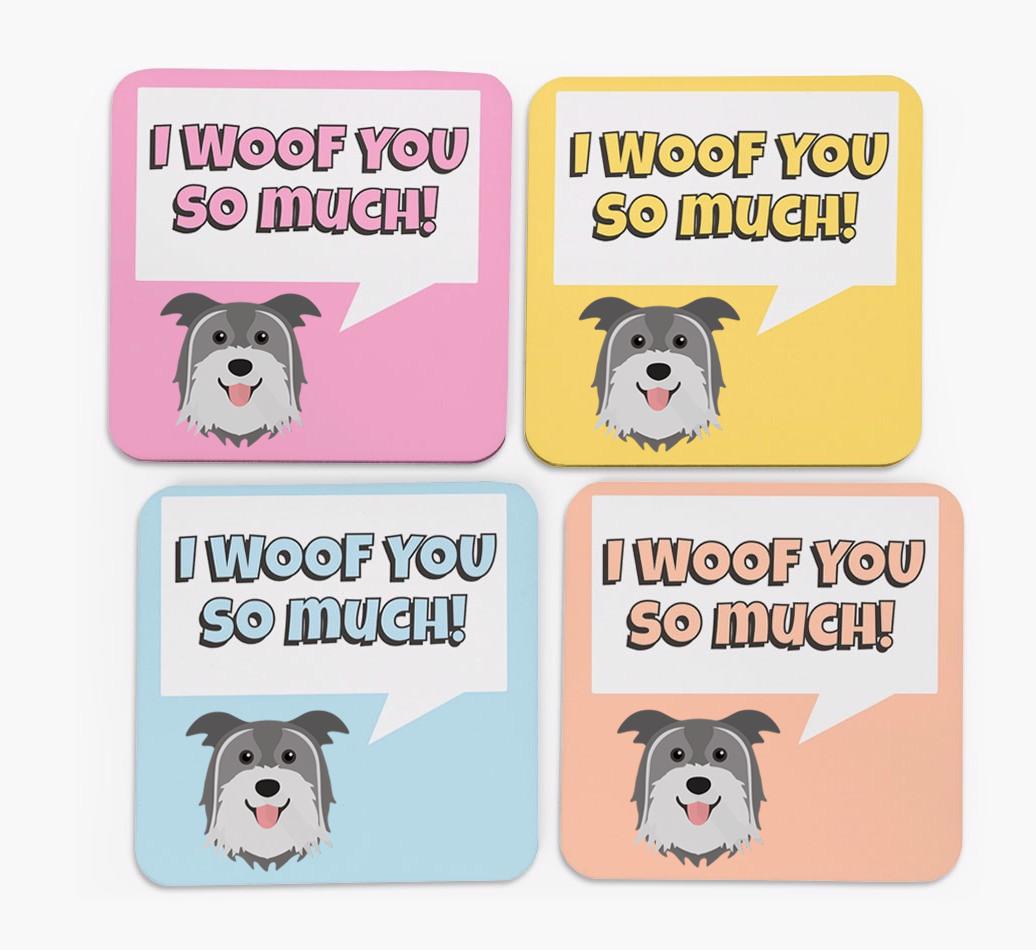 'I Woof You So Much' - Personalized Pyrenean Shepherd Coasters (Set of 4)