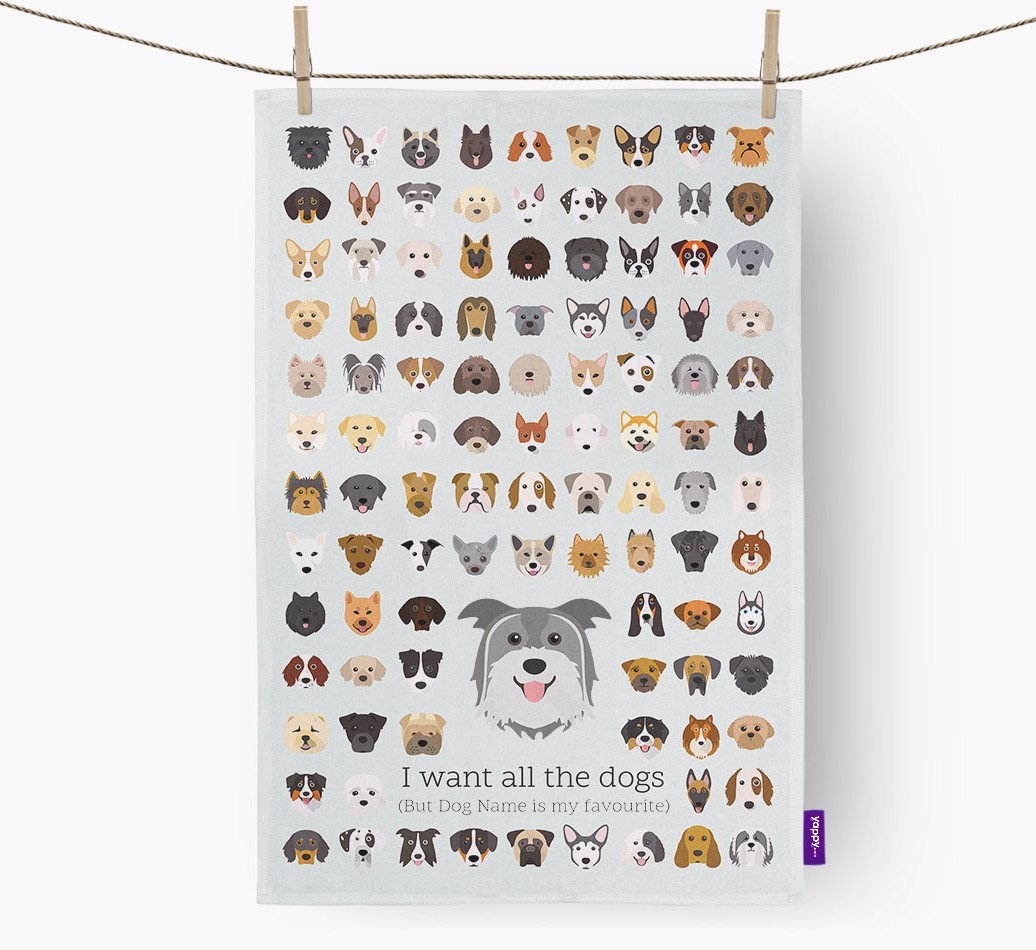 'I Want All the Dogs' - Personalized Pyrenean Shepherd Dish Towel