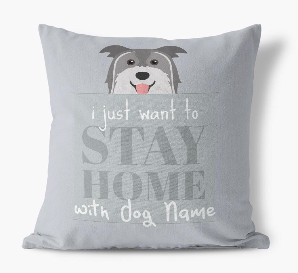 Stay Home: Personalized Pyrenean Shepherd Canvas Pillow