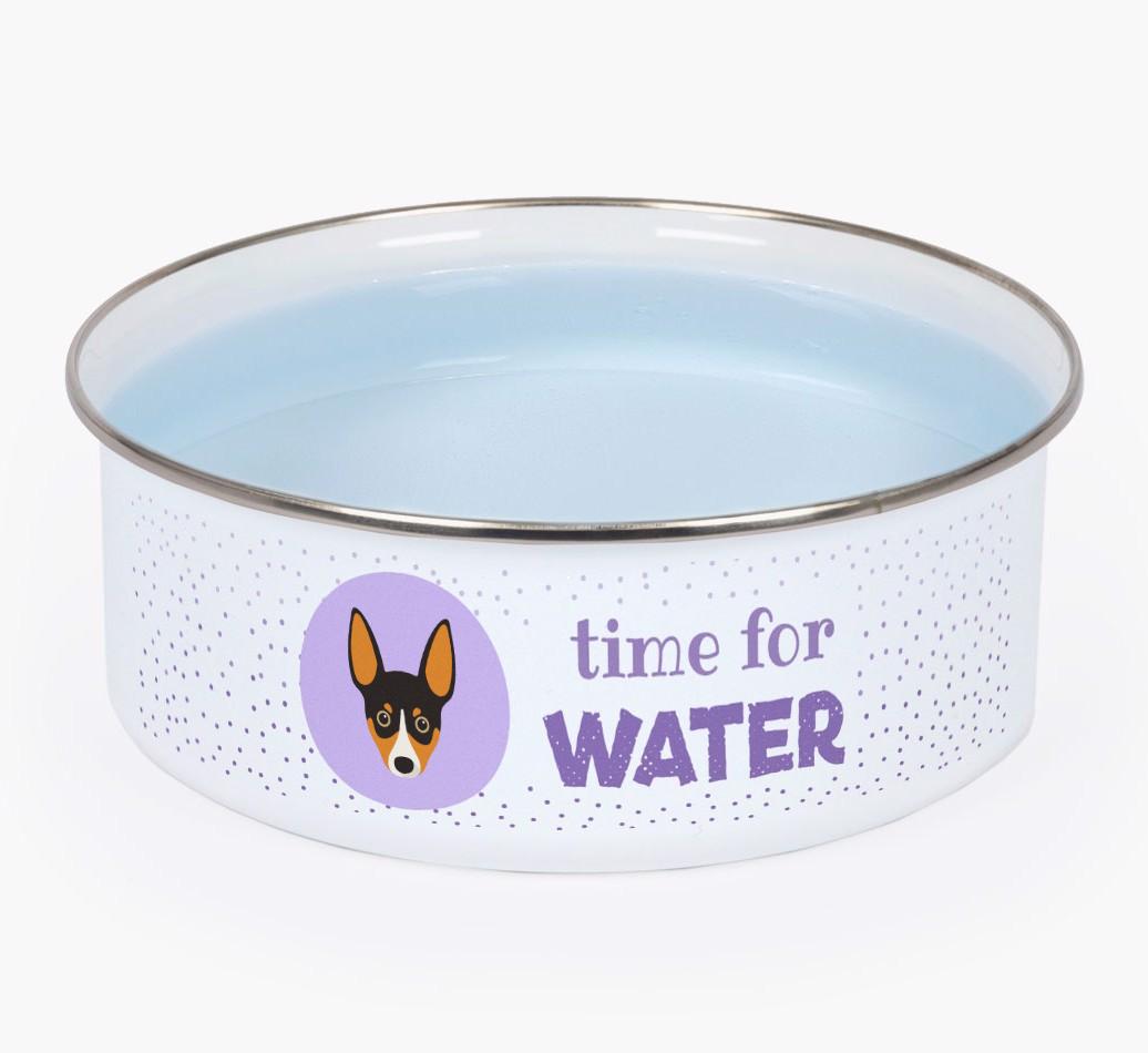 Time For Water: Personalized Enamel Rat Terrier Bowl