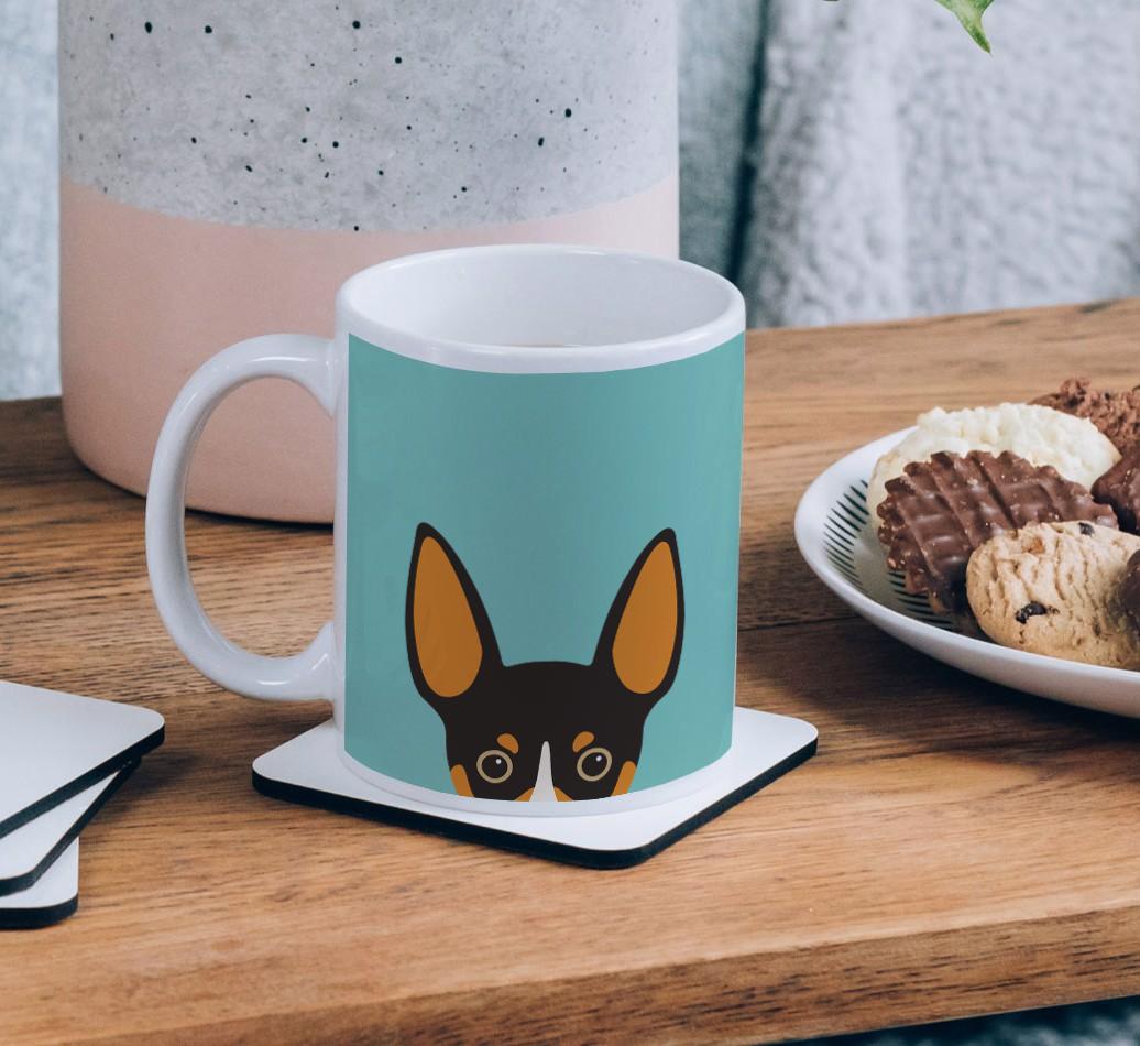 Enjoy the perfect coffee break with a mug that stars your furry friend! Featuring a Yappy.com exclusive Rat Terrier peeking icon, this pawgeous mug will look at home in any dog lover's kitchen and we're pretty sure Rat Terrier will be a fan too.