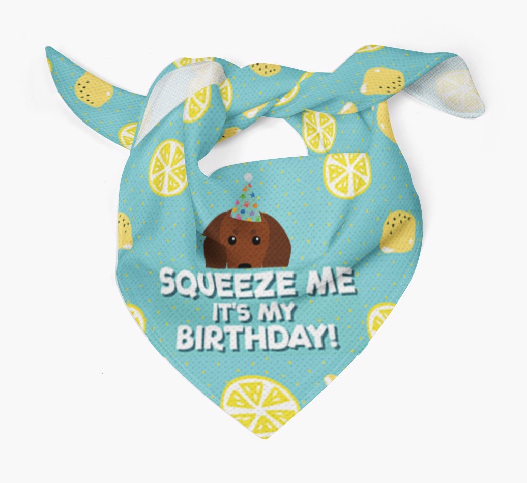 'Squeeze Me, It's My Birthday' - Personalized Redbone Coonhound Bandana