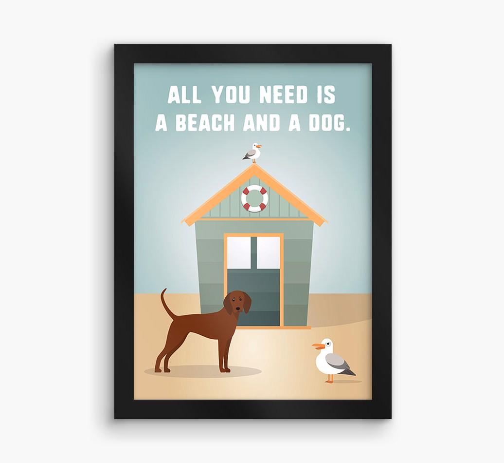 'Beach and a Dog' - Personalized Redbone Coonhound Framed Print