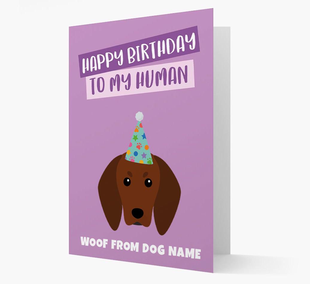 'Happy Birthday to My Human' - Personalized Redbone Coonhound Card