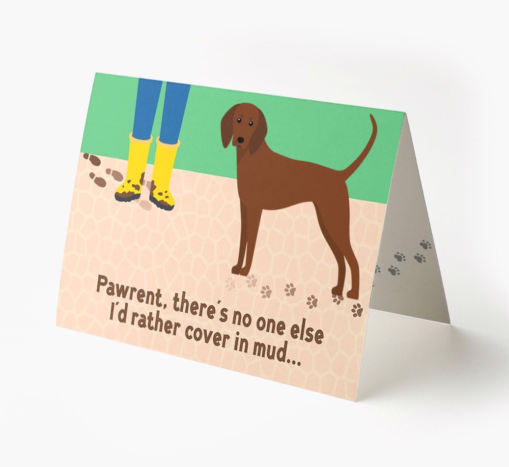 This comical card is sure to delight Redbone Coonhound's pawrent (without getting muddy), especially as it stars their Coonhound's cheeky icon.