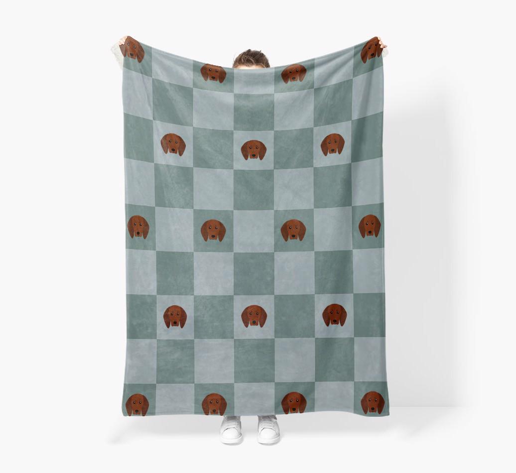 'Checkboard' - Personalized Redbone Coonhound Blanket: Premium Sherpa Fleece