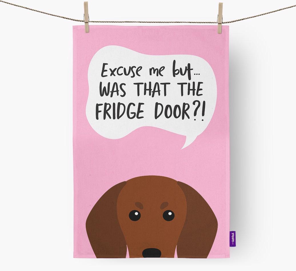 'Was That The Fridge Door?!' - Personalized Redbone Coonhound Dish Towel