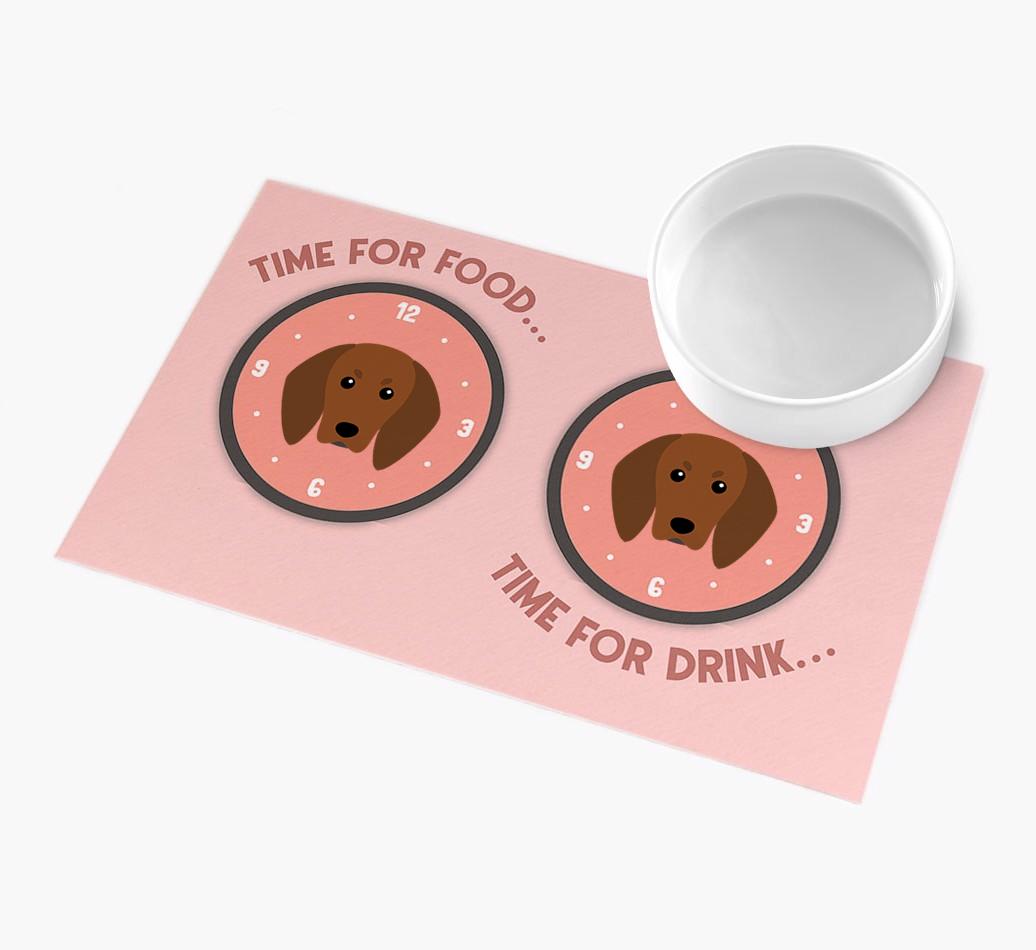 'Time For...' - Personalized Redbone Coonhound Feeing Mat