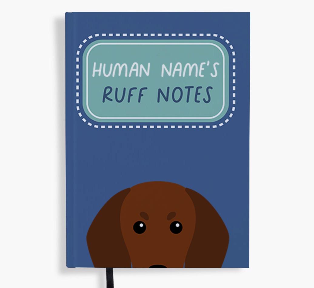 Starring Redbone Coonhound's cute icon and personalized with your name, this vibrant notebook may be a place for your ruff notes, but the cover will always look wagnificent!