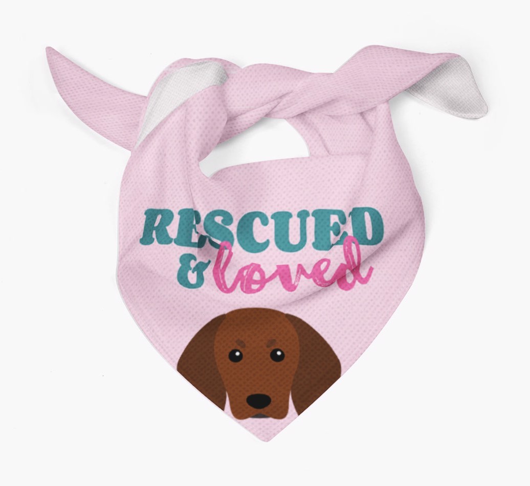 'Rescued and Loved' - Personalized Redbone Coonhound Bandana