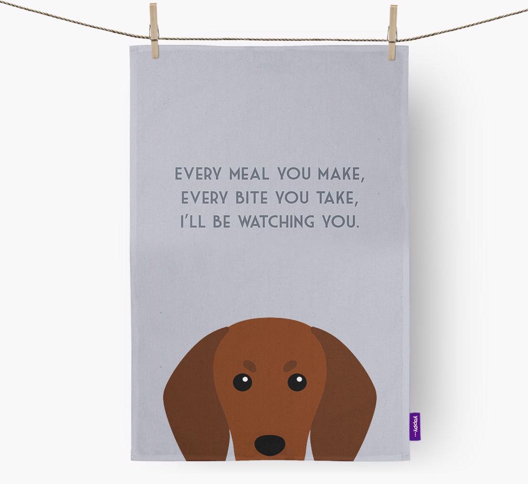 'I'll Be Watching You' - Personalized Redbone Coonhound Dish Towel