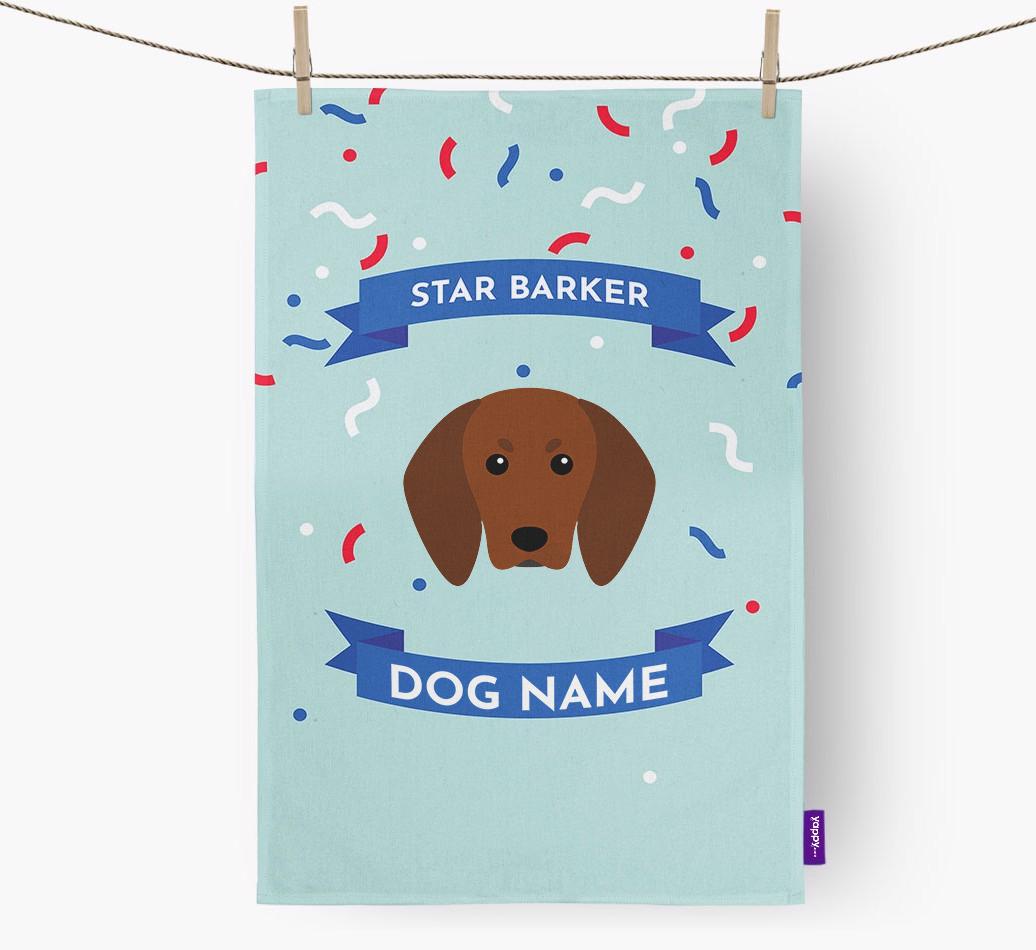 'Star Barker' - Personalized Redbone Coonhound Tea Towel