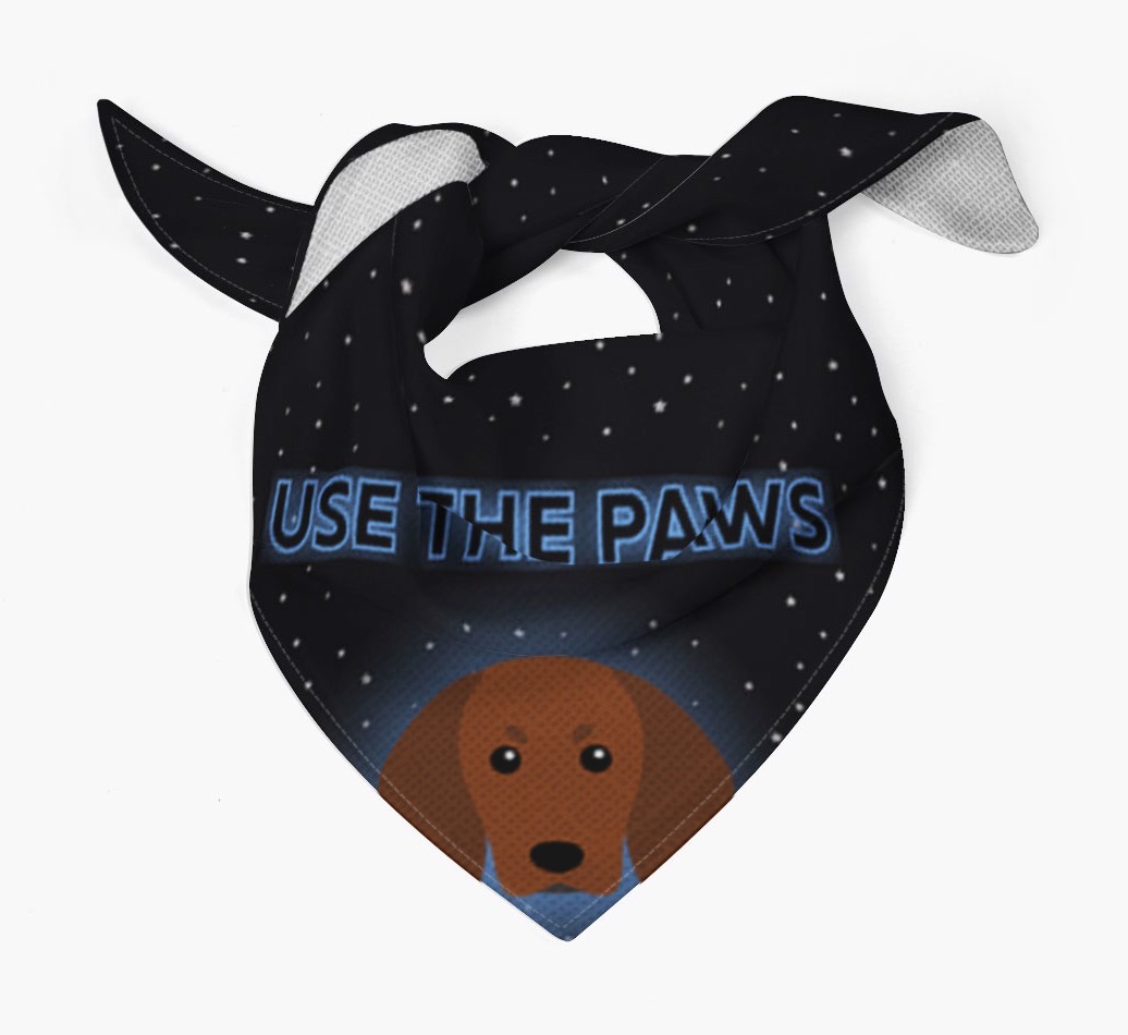 Featuring a starry night sky and glowing text, this bandana is made extra special with the addition of your Coonhound's cute icon.