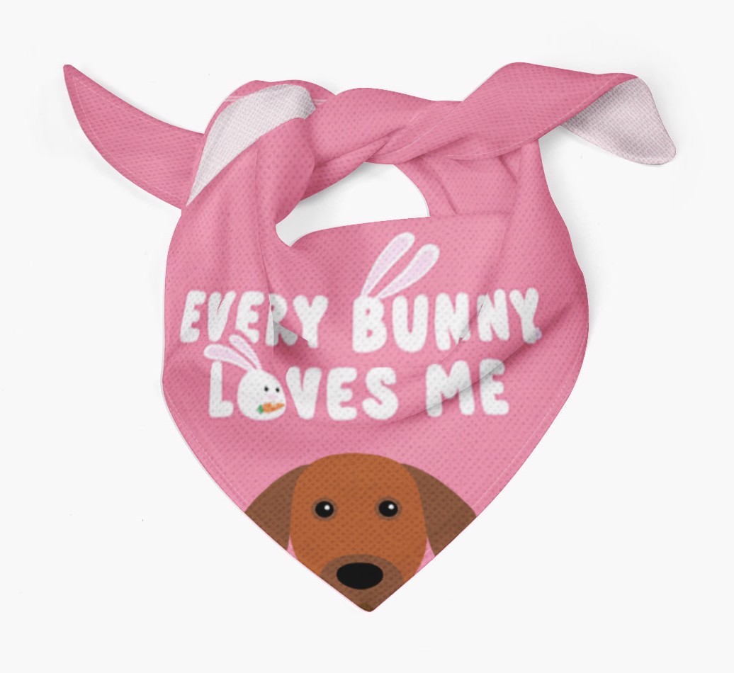Tailored with the fabulous saying: 'Every Bunny Loves Me', this bandana is the perfect addition to your Rhodesian Ridgeback's wardrobe! Available in four egg-ceptional colors and personalized with your Rhodesian Ridgeback's icon, this is the perfect pawchase for Easter!