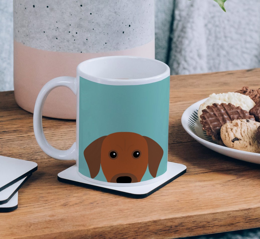 Enjoy the perfect coffee break with a mug that stars your furry friend! Featuring a Yappy.com exclusive Rhodesian Ridgeback peeking icon, this pawgeous mug will look at home in any dog lover's kitchen and we're pretty sure Rhodesian Ridgeback will be a fan too.