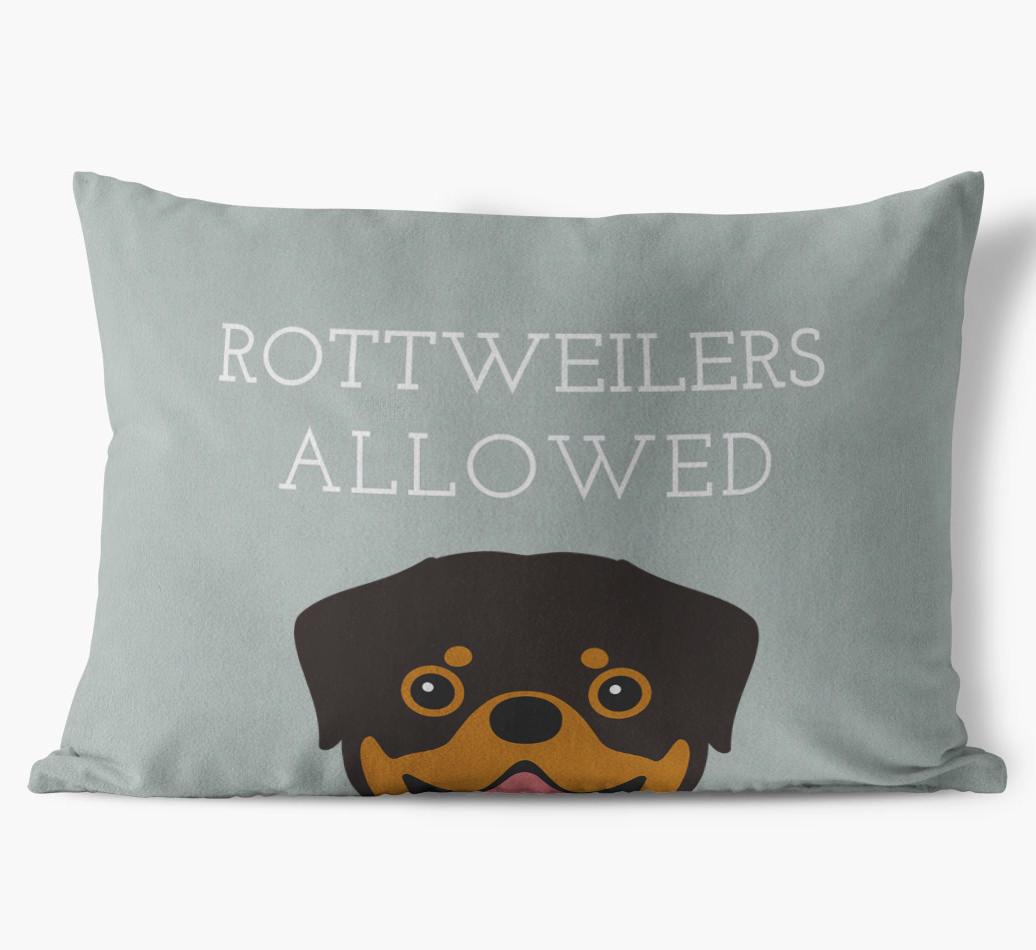 This exclusive, luxurious pillow is printed with the words ‘Rottweilers Allowed’, which I’m sure Your Rottweiler would definitely approve of.