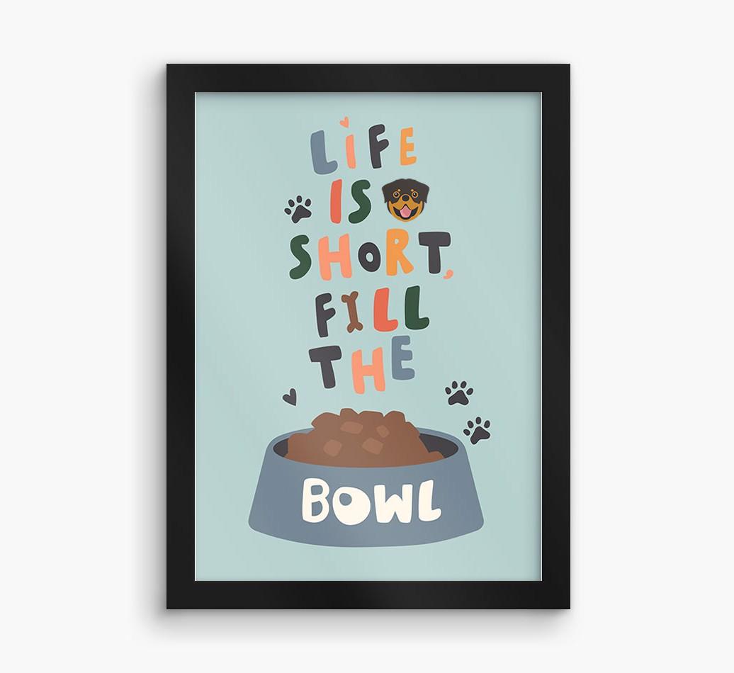 Life Is Short, Fill The Bowl: Personalized Rottweiler Framed Print