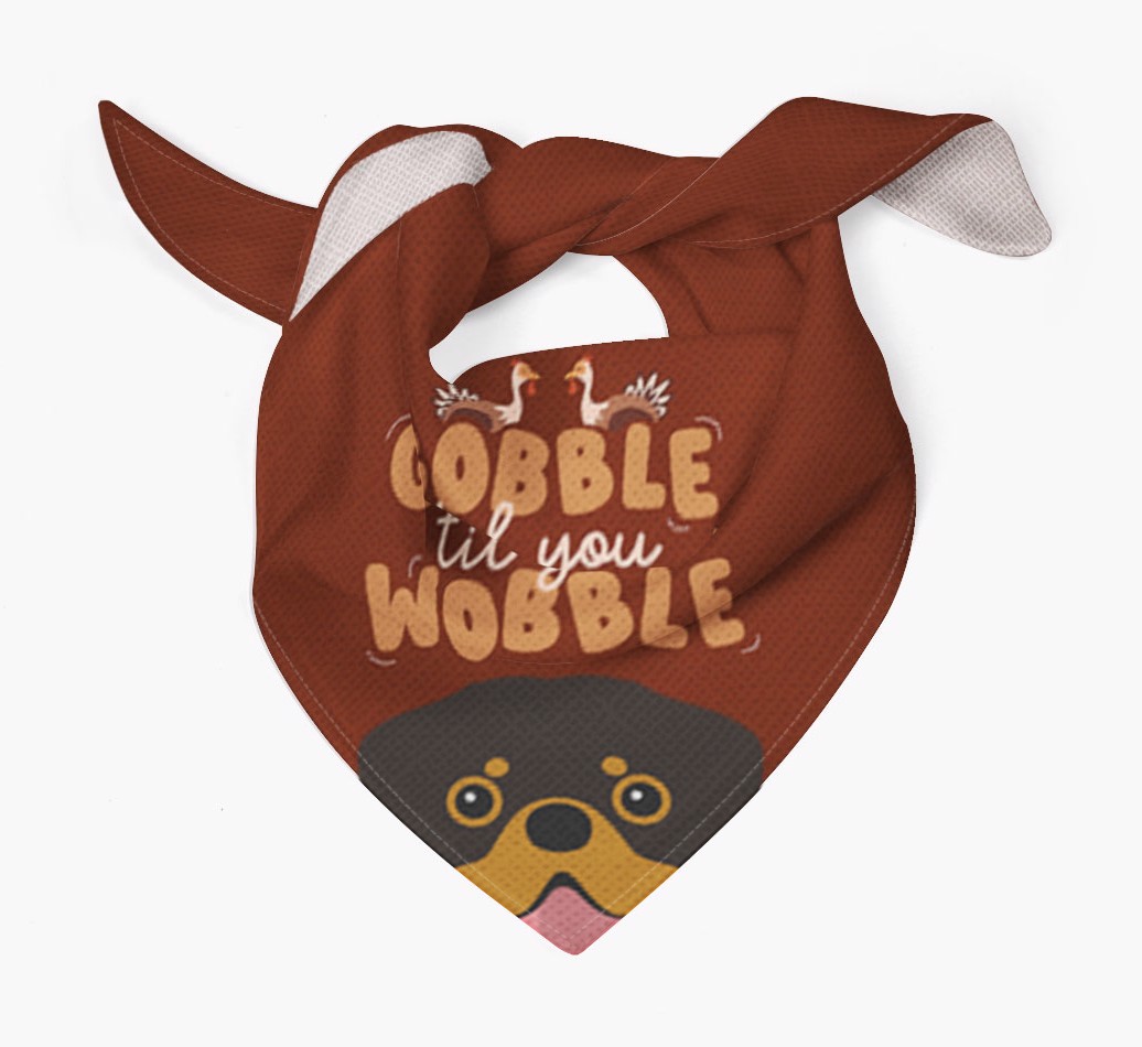 This cute custom bandana is printed with the phrase of the season, "gobble til you wobble"!