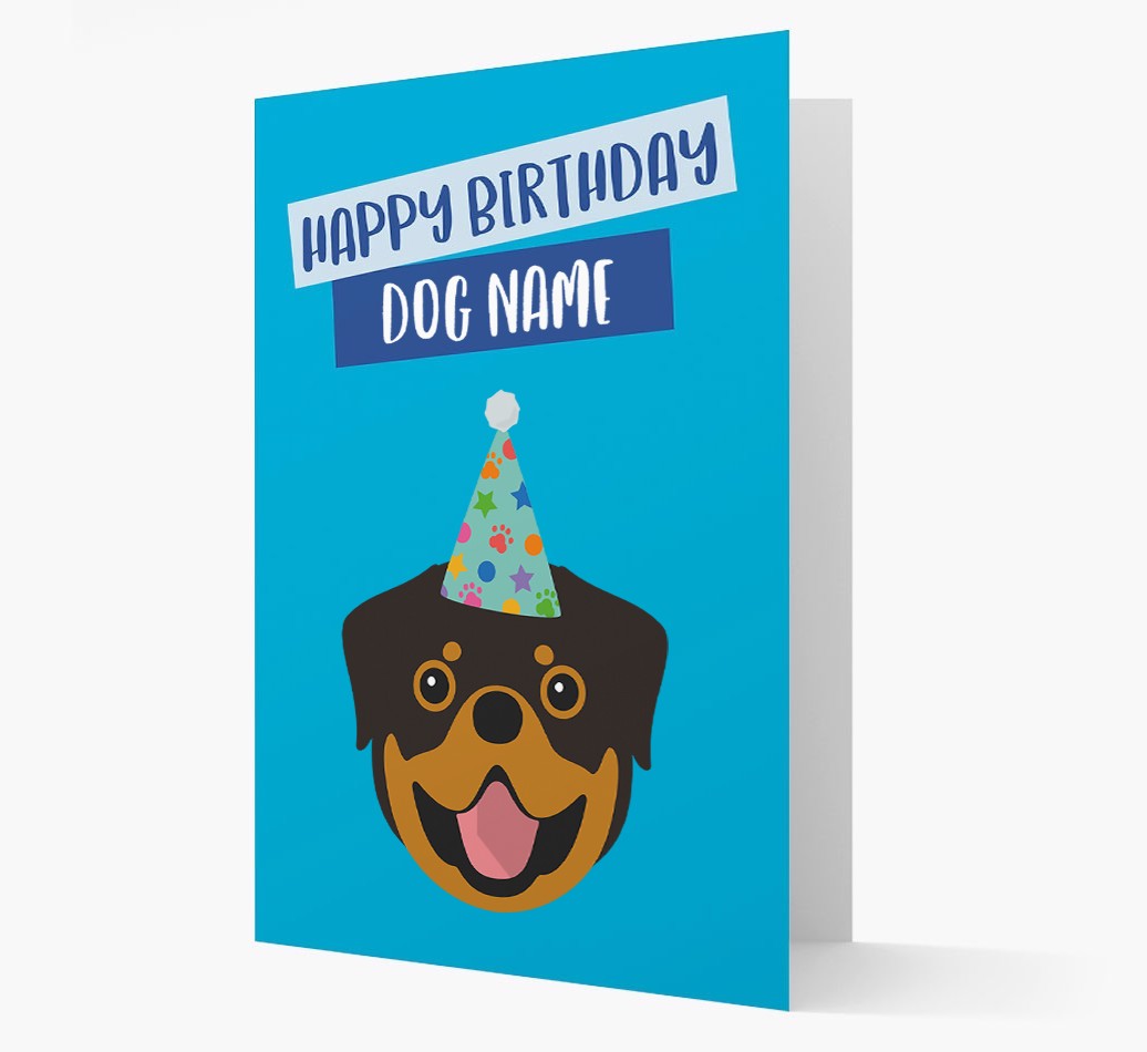 Why not wish Your Rottweiler Happy Birthday in true pawty style with this party hat birthday card.