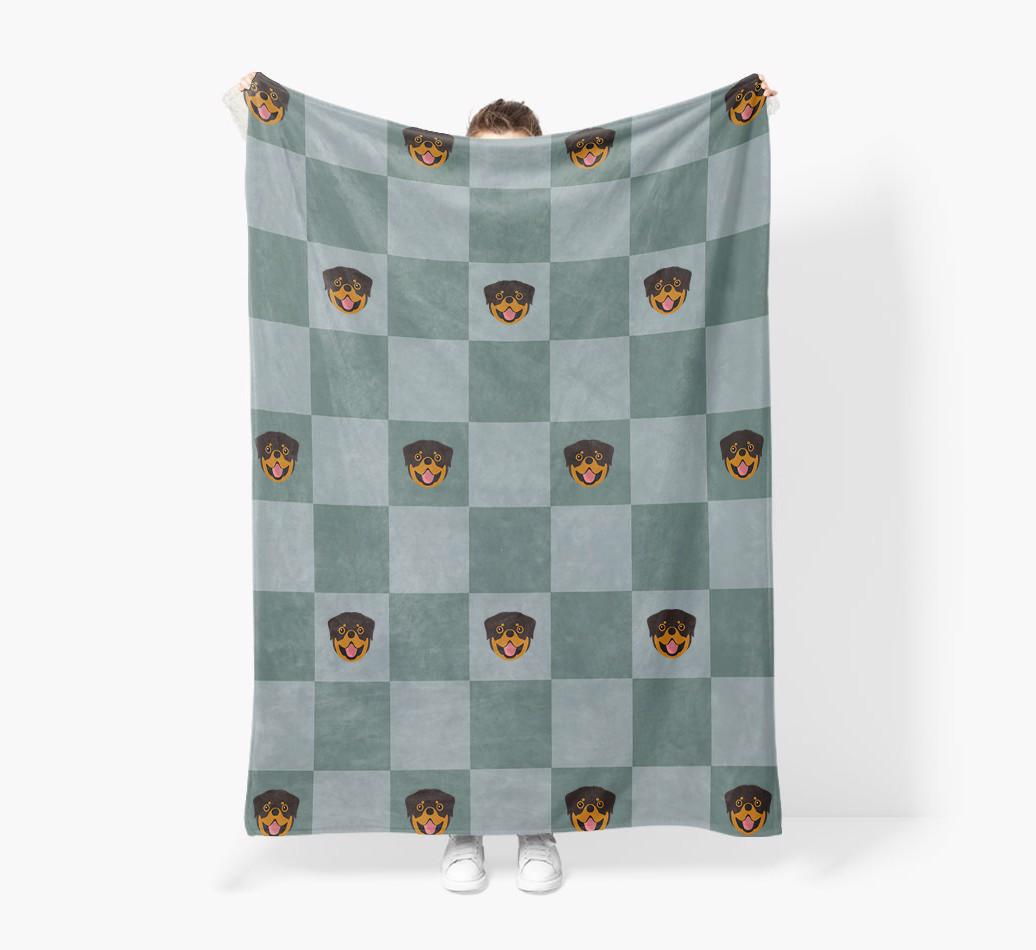'Checkboard' - Personalized Rottweiler Blanket: Premium Sherpa Fleece