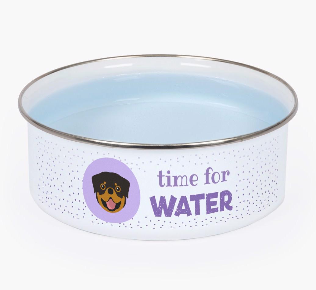 Time For Water: Personalized Enamel Rottweiler Bowl