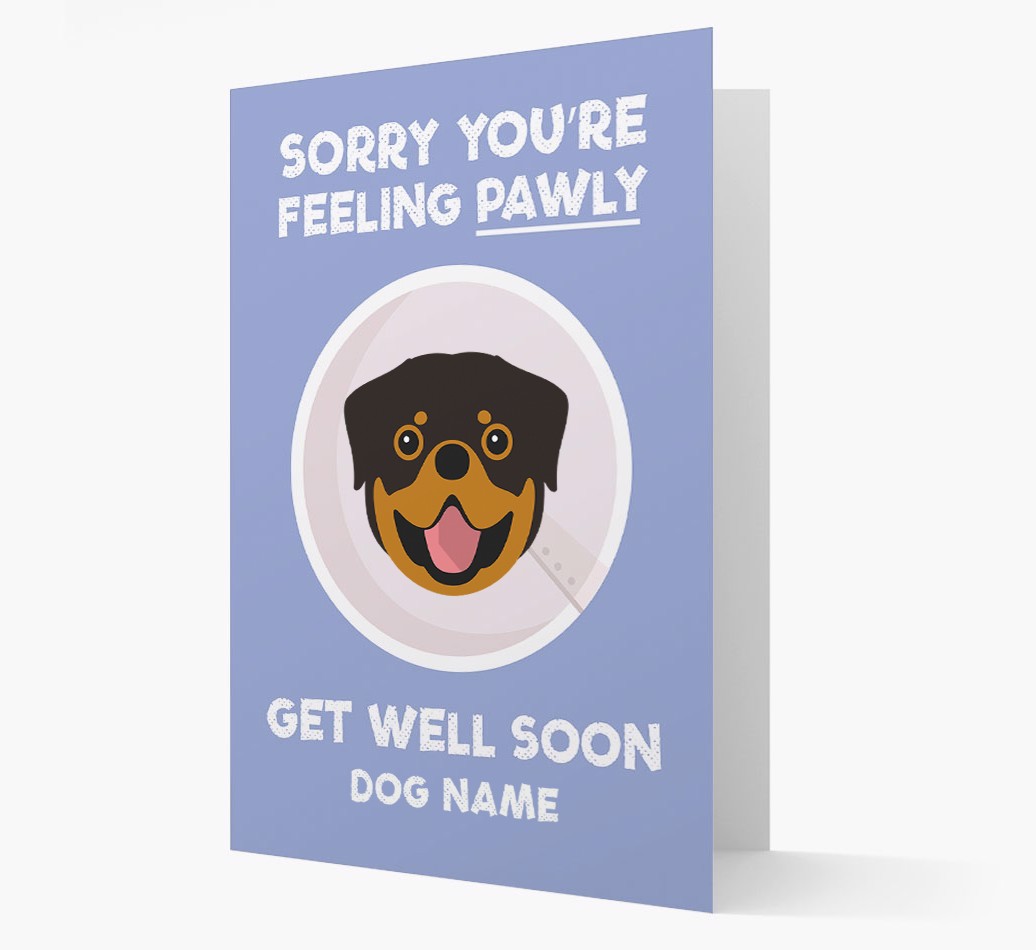 'Sorry You're Feeling Pawly' - Personalized Rottweiler Get Well Soon Card