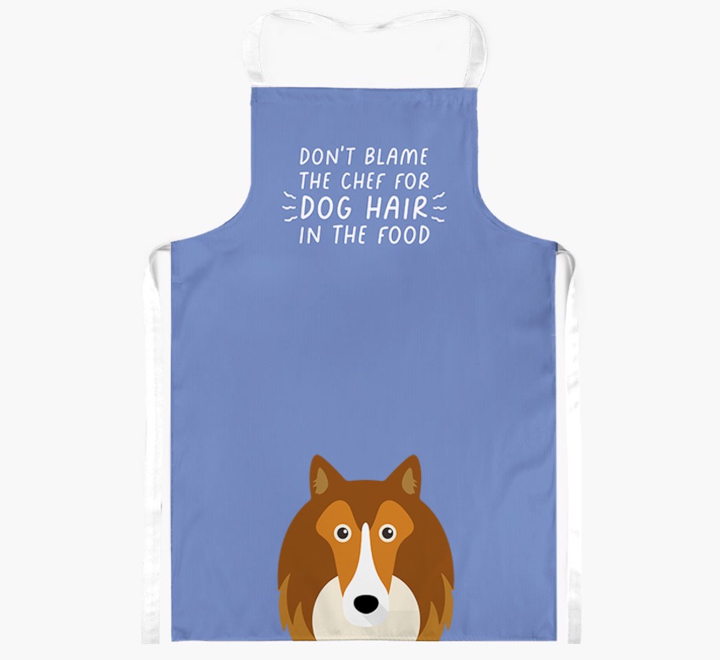 This funny apron will warn friends and family not to blame the chef for dog hairs in their food, they have Rough Collie to thank for that!