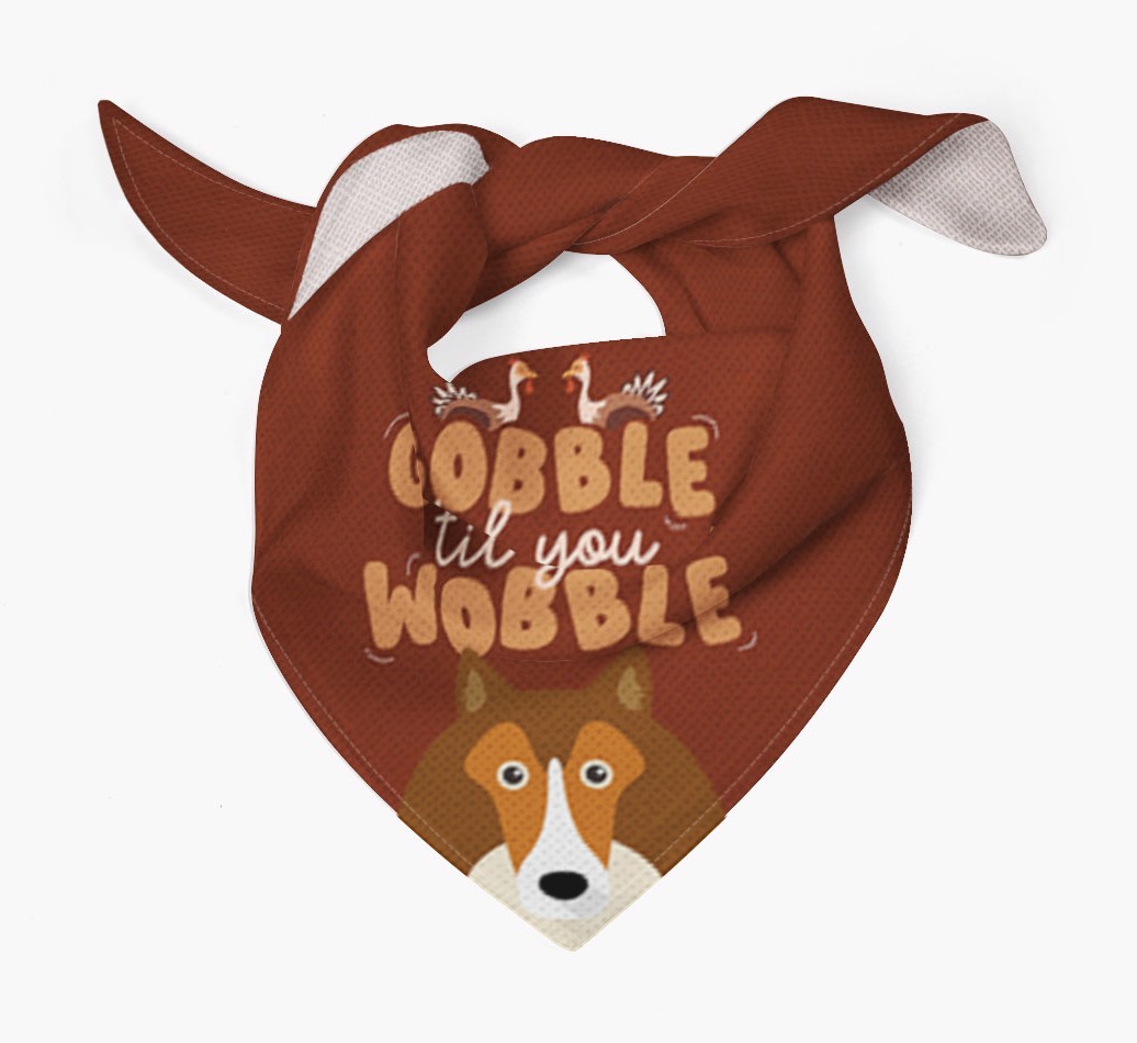 This cute custom bandana is printed with the phrase of the season, "gobble til you wobble"!