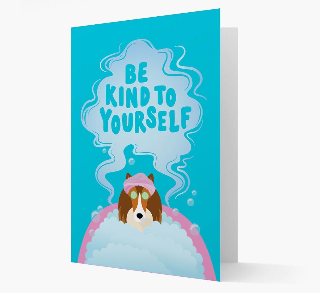 With this furbulous Collie design, featuring Rough Collie relaxing in a bath with the words ‘Be Kind To Yourself’, this card is the ulti-mutt way to let someone you love know that they need to chill!