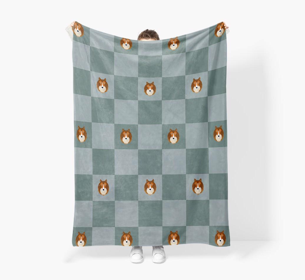 'Checkboard' - Personalized Rough Collie Blanket: Premium Sherpa Fleece