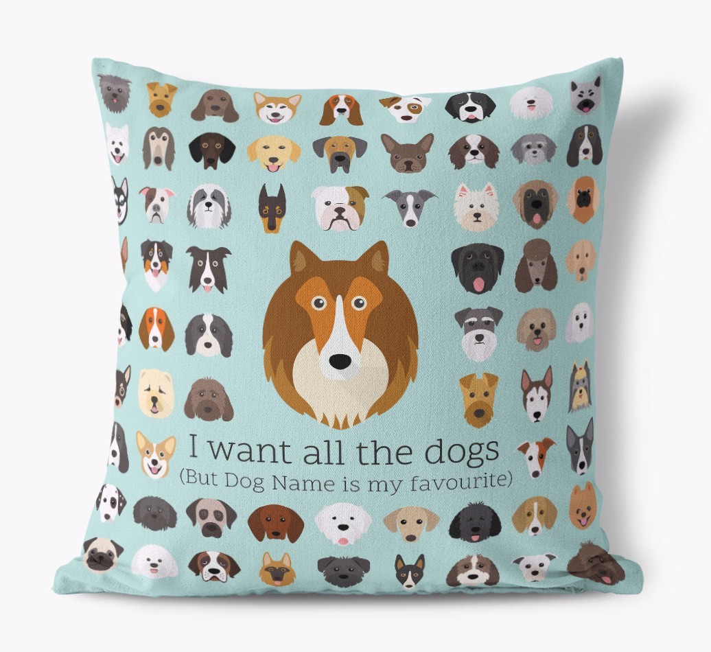 I Want All the Dogs: Personalized Rough Collie Canvas Pillow