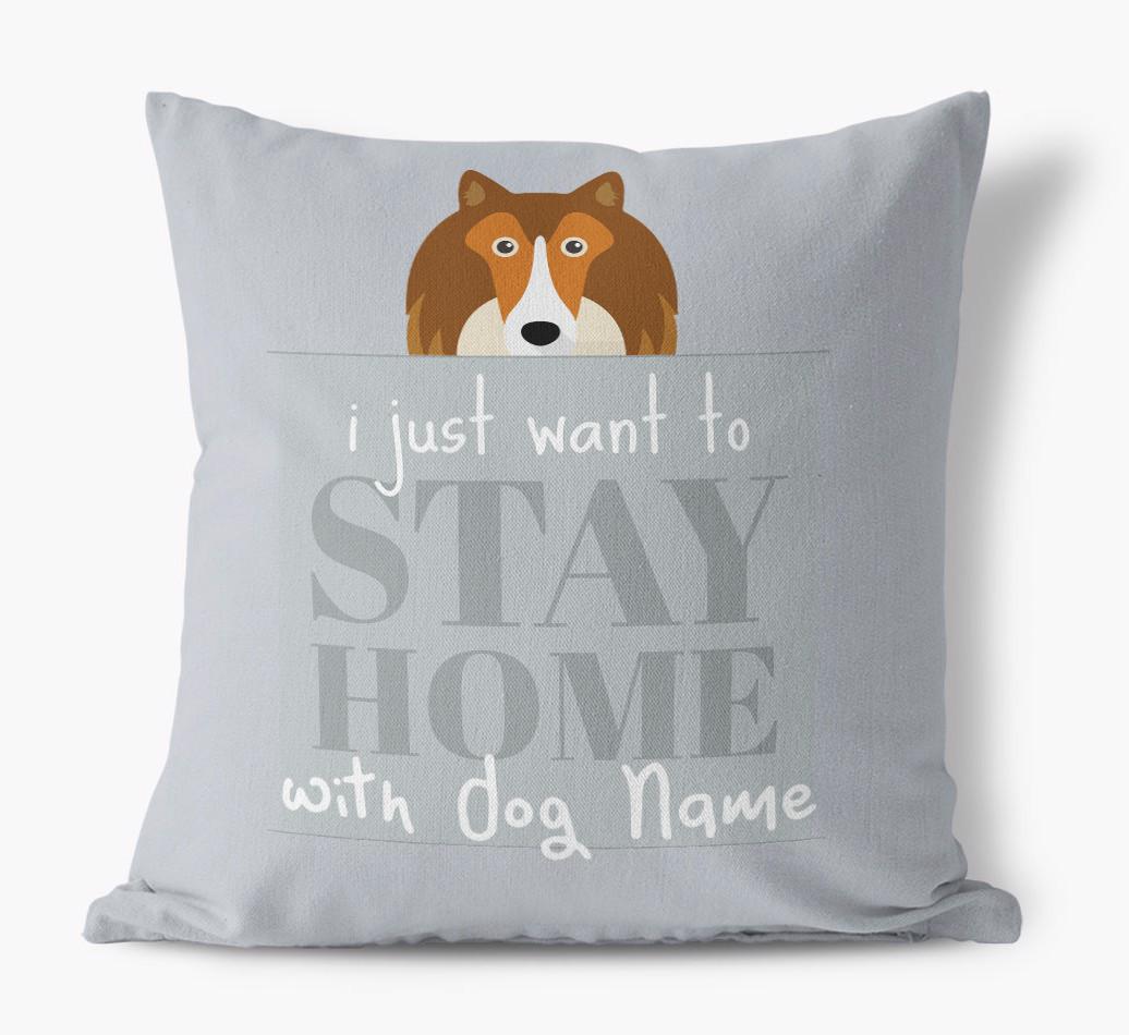 Stay Home: Personalized Rough Collie Canvas Pillow
