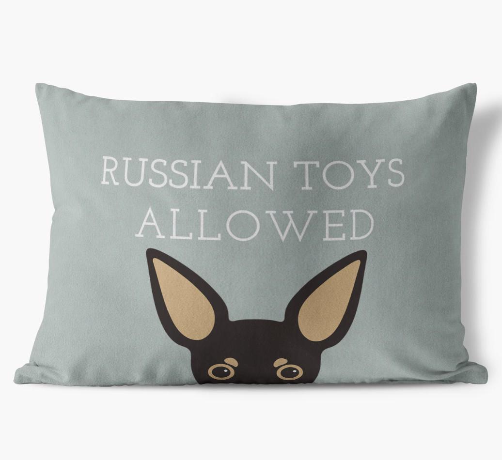 This exclusive, luxurious pillow is printed with the words ‘Russian Toys Allowed’, which I’m sure Your Russian Toy would definitely approve of.